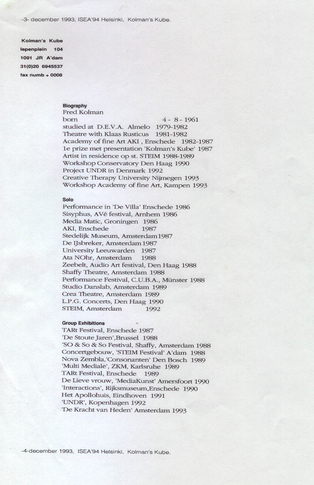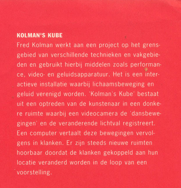 FONDS VOOR BEELDENDE KUNSTEN VORMGEVING EN BOUWKUNST organised DE KRACHT VAN HEDEN in 1993 Presenting work by different Artists. This work was part of that group exhibition.